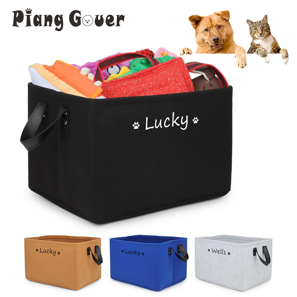 Personalized Pet Toy Storage Basket Felt Cat Dog Toys Storage Box Custom Name Tag Dogs Cloth Home Organize Tool Dog Accessories Aliexpress